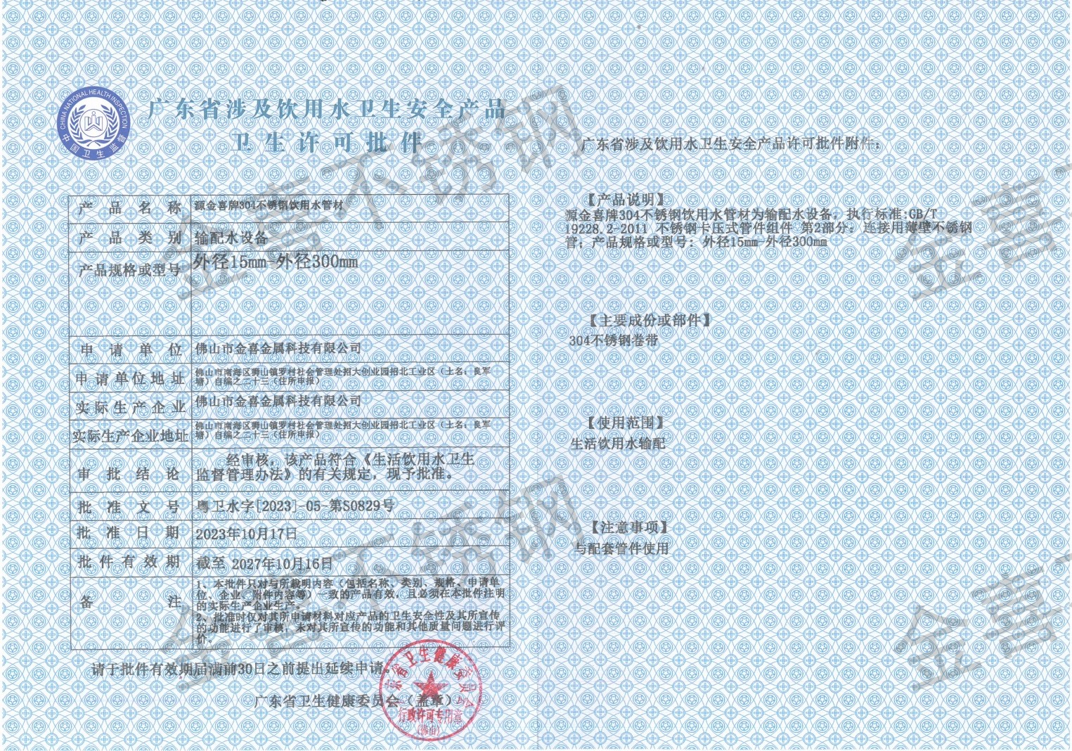 工厂占地22700m²面积,坐落于广东省佛山市南海区狮山镇招大创业园,是一家专业生产、研发、销售建筑装饰用不锈钢管、工业配管、工业流体管道、机械结构用不锈钢管、不锈钢水管、薄壁不锈钢管、不锈钢卡压管件、不锈钢沟槽管件、卫生食品饮用水不锈钢管等不锈钢产品现代化企业。 公司主营产品材质有201、304、316、316L等不锈钢系列产品,产品符合国内外多种规范标准,依照中国GB(12770),美国ASTM(A554),日本JIS(G3446),欧盟EN等规范标准。